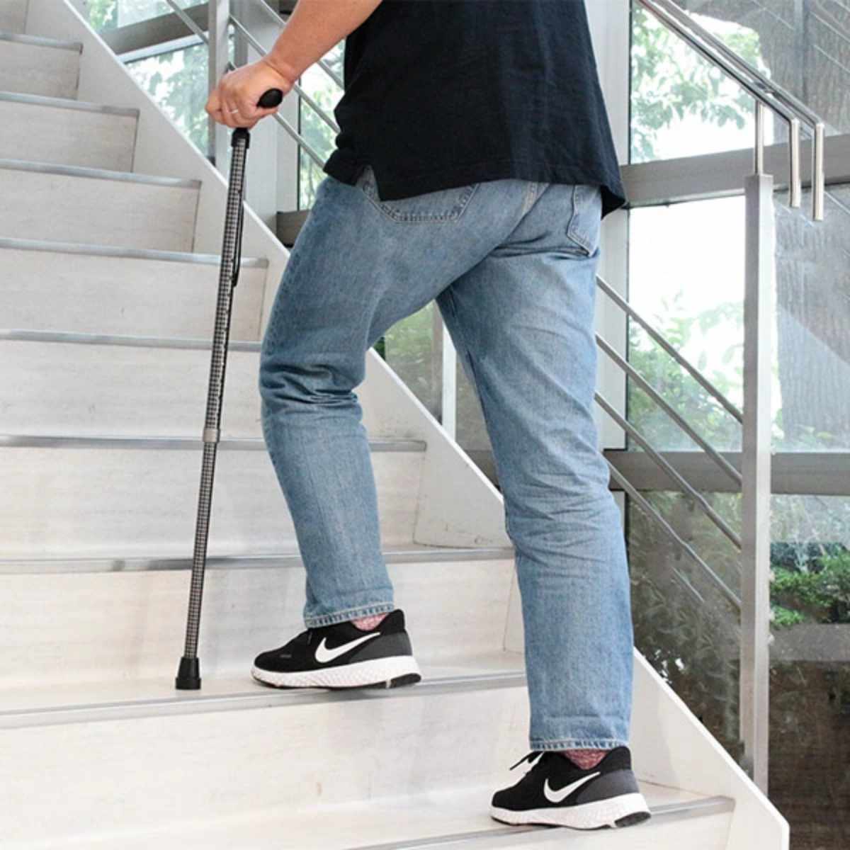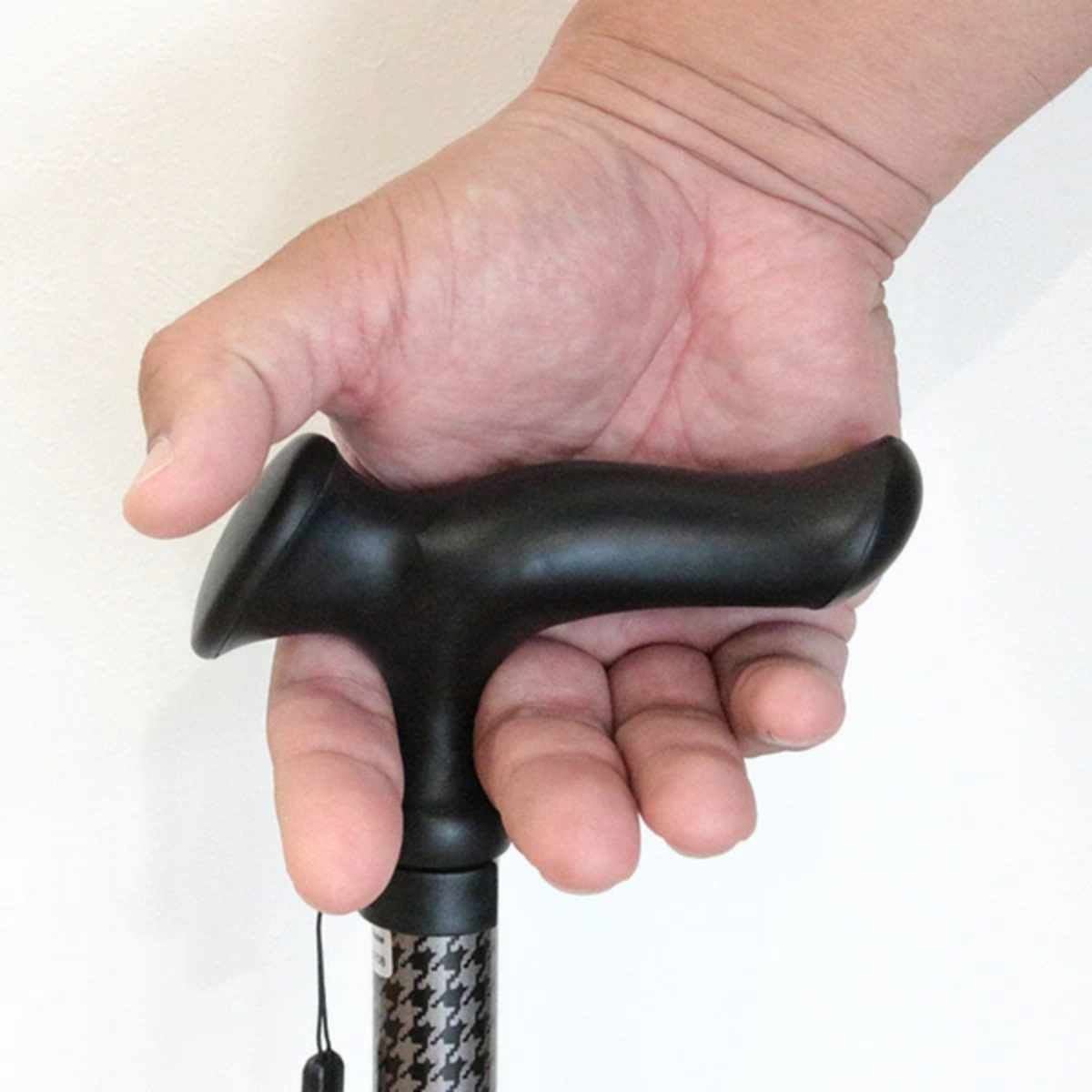 腕と杖が一直線になるように持ってください。グリップの一部だけを握ると不安定になり危険です。