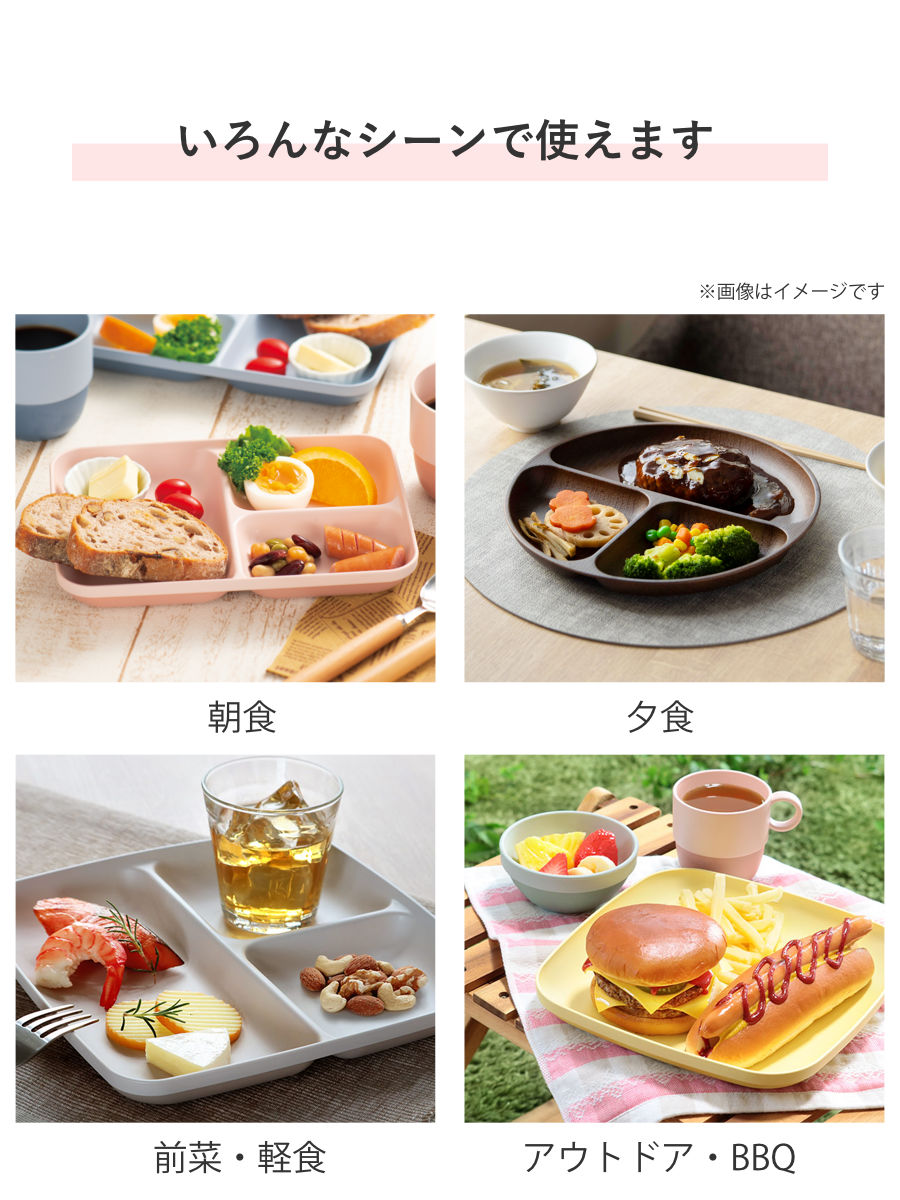 主菜・副菜と、おかず毎に家族分のお皿を準備すると毎日大変。仕切りプレートなら1枚でバランスよく盛り付ける事ができます。味が混ざらず、3種類以上の料理をのせられ、取り皿を何枚も用意する手間が省けます。