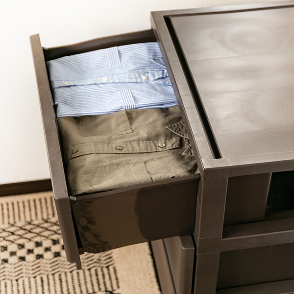 引き出し一段あたり、バスタオルなら約5~6枚、Yシャツなら約7~8枚収納することが可能です。