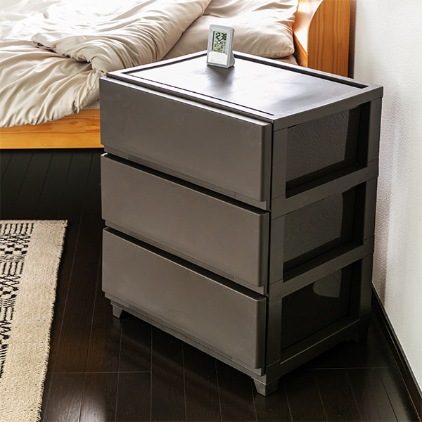 プラスチック製の収納ケースでありながら家具調の脚仕様になっており、お部屋の目立つところに置いてもインテリアのようで違和感がありません。また、脚の部分は別売りのキャスターに変更可能です。