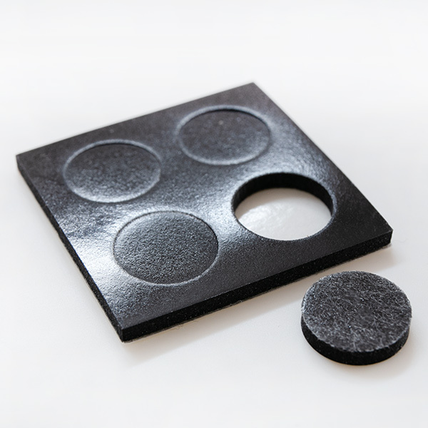 ウレタンフォーム素材のすべり止めが付いてきます。本体の脚裏にお付けください。