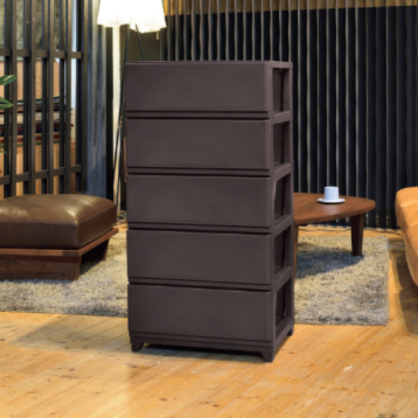 プラスチック製の収納ケースでありながら家具調の脚仕様になっており、お部屋の目立つところに置いてもインテリアのようで違和感がありません。また、脚の部分は別売りのキャスターに変更可能です。