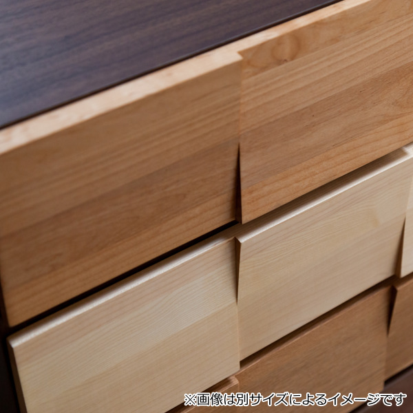 無垢材に施された斜めの削り込み加工が、モダンな印象を与えてくれます。桐材をふんだんに使用した丁寧な造りのチェストで、大切な衣類をしっかり守ってくれます。背面化粧が施されているのでどの角度から見ても美しく、間仕切りとしてもお使いいただけます。