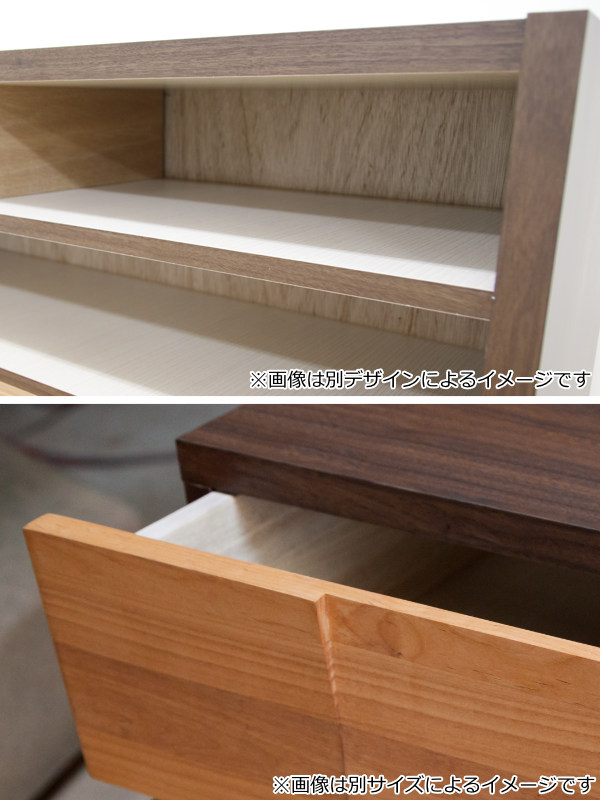 | 材質 | 表面材:天然木無垢 天板:強化シート貼 側板:プリント貼 塗装:オイル仕上げ 引出し:桐箱組、矩形組み手接ぎ(ロッキング組)、垣板厚16mm、底板5mm |