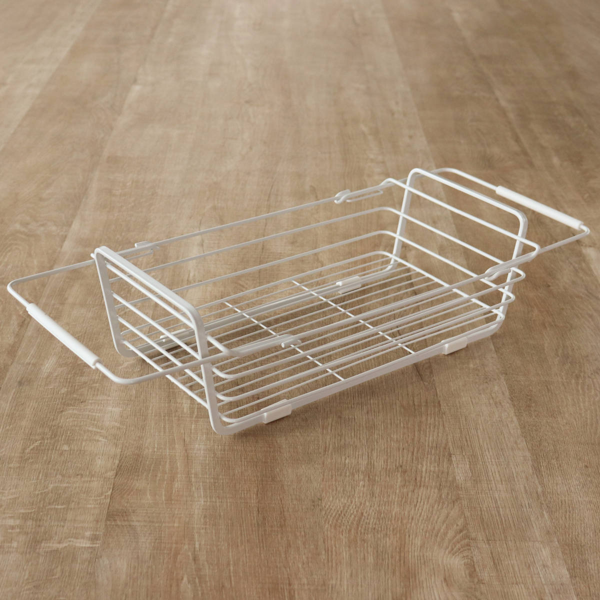 シンクに掛けて水切りができるスライド式の水切りバスケットです。シンクに掛けても、シンク上でもお好みの置き方でお使いいただけます。