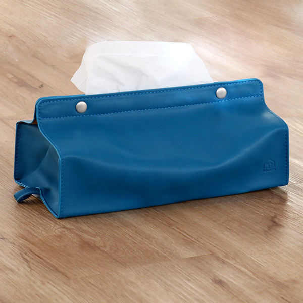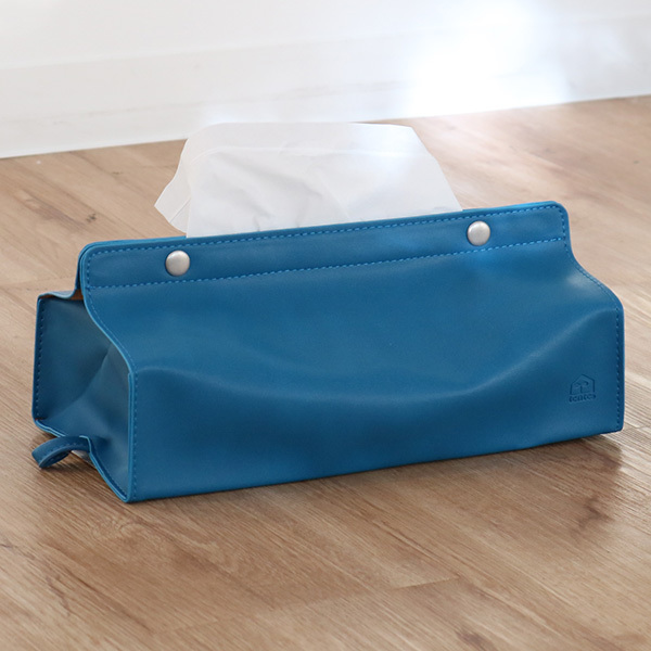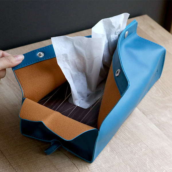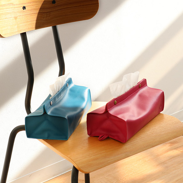 スナップボタンを外してカバーを開き、ティッシュボックスをセットするだけで、インパクトのあるインテリアになります。