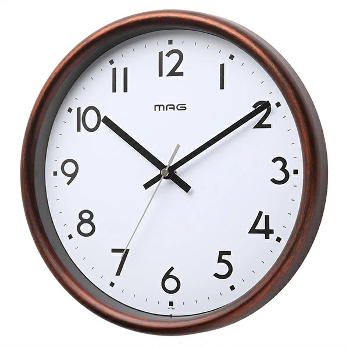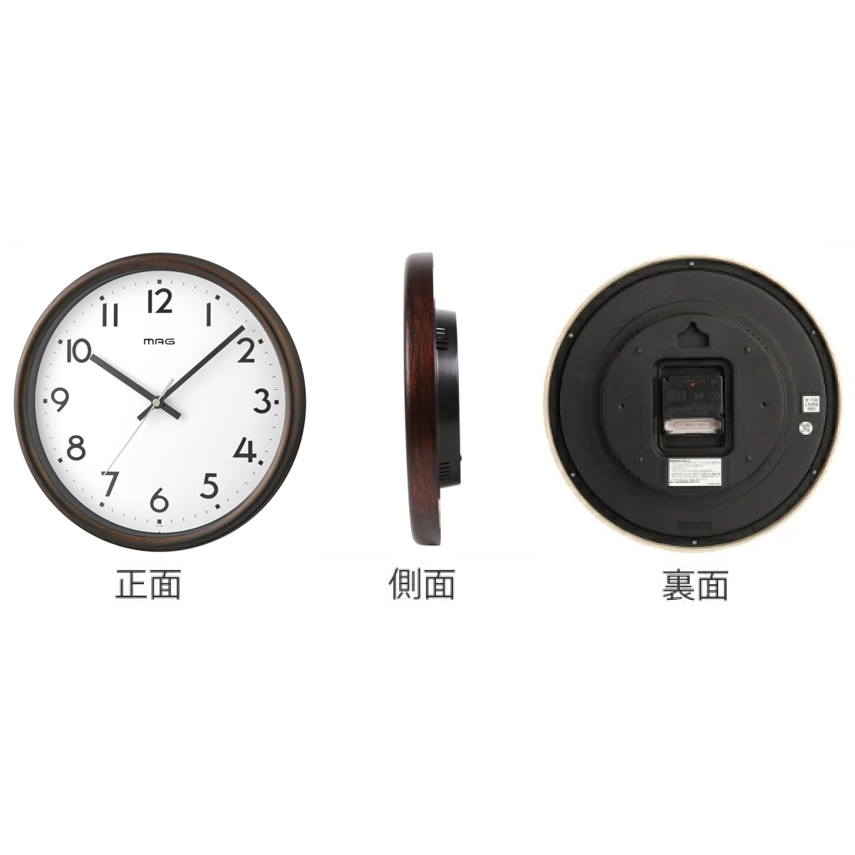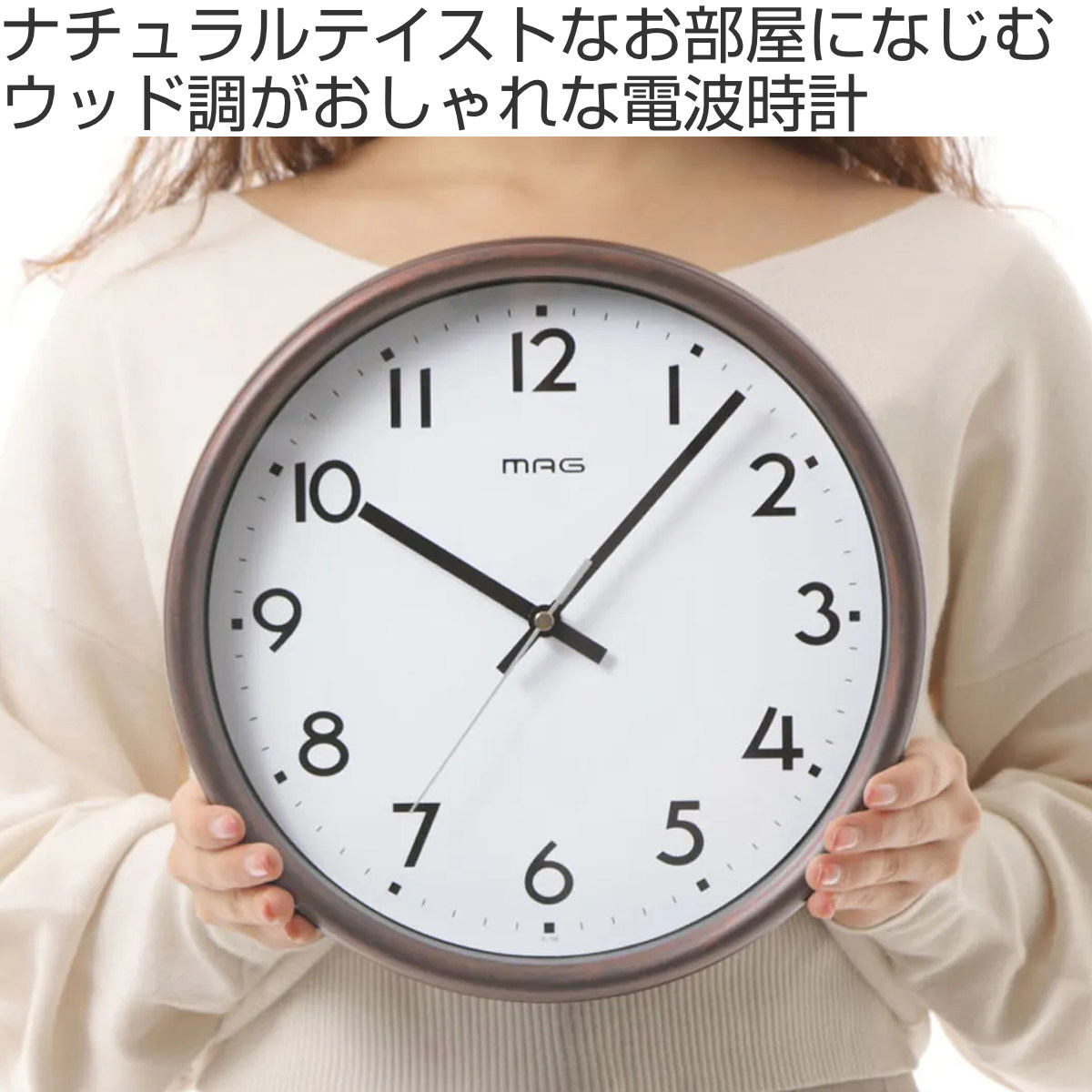 フレームにスクラッチ塗装をほどこしたウッド調の電波掛時計