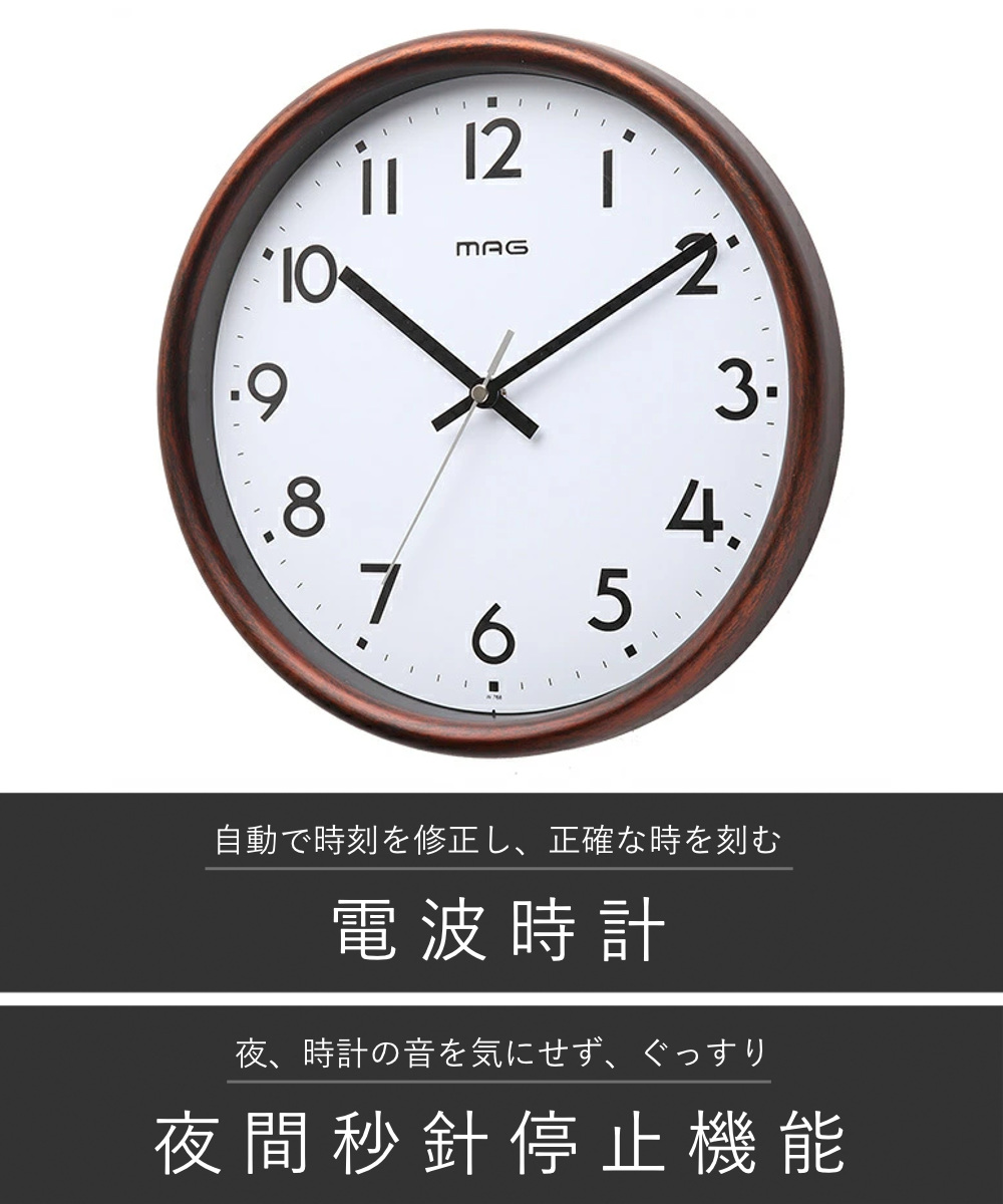 カチカチ進むステップ秒針ですが、夜間は秒針が停止するので、静かな寝室でもお使いいただけます。