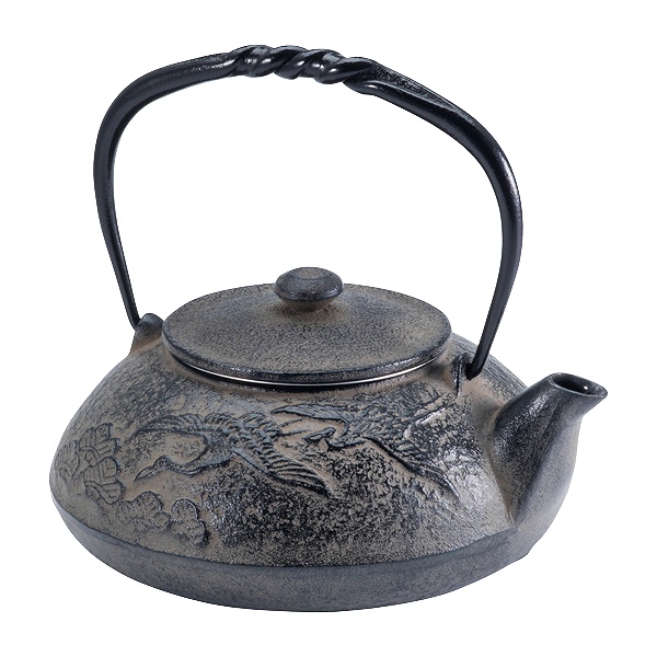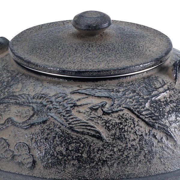 ●縁起の良い「松」と「鶴」を本体にデザインした南部鉄急須です。
