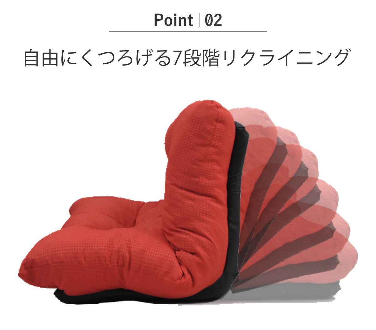 背部が7段階のリクライニング式なので、用途に合わせて自由に角度を変えられます。座ったり寝転んだり、好きな姿勢でくつろぐことができます。