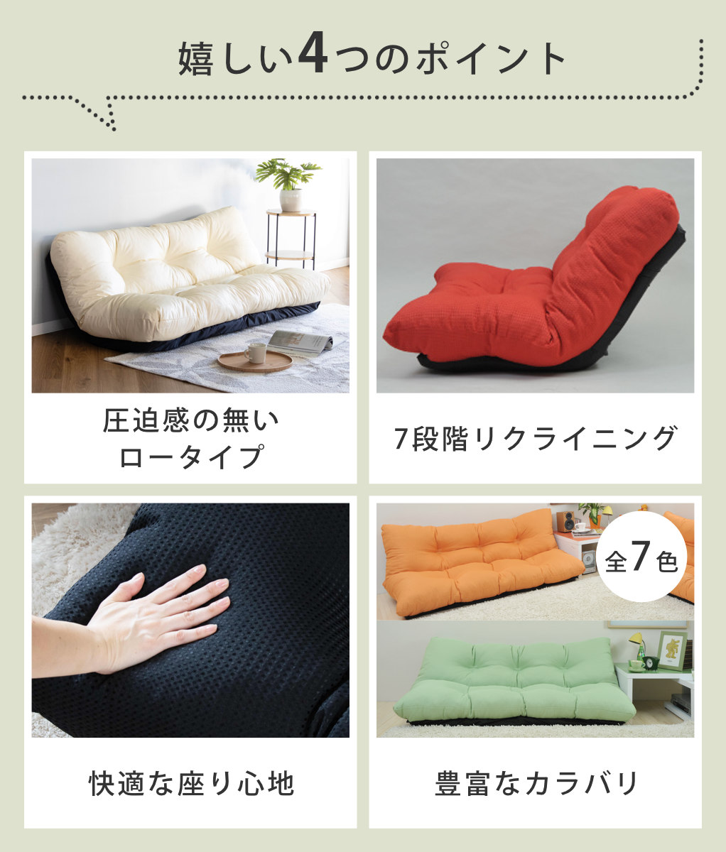 リクライニング付き包み込むようなローソファ