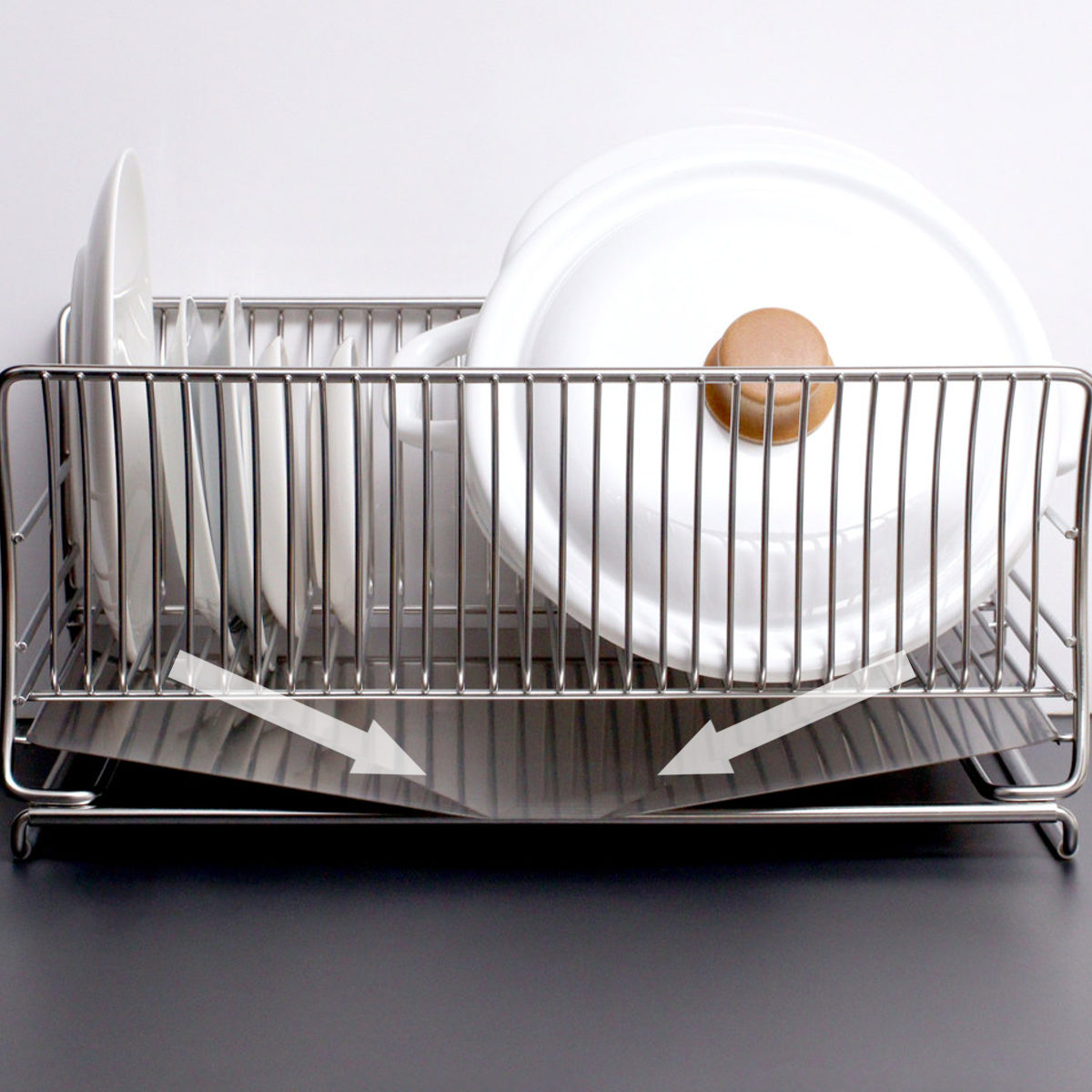 傾斜付きの排水トレーで、お皿から落ちた水がシンクへスムーズに流れ落ちます。水が溜まらないので、面倒な水捨てが不要です。トレーは取り外せるのでお手入れが簡単で、いつも衛生的にお使いいただけます。