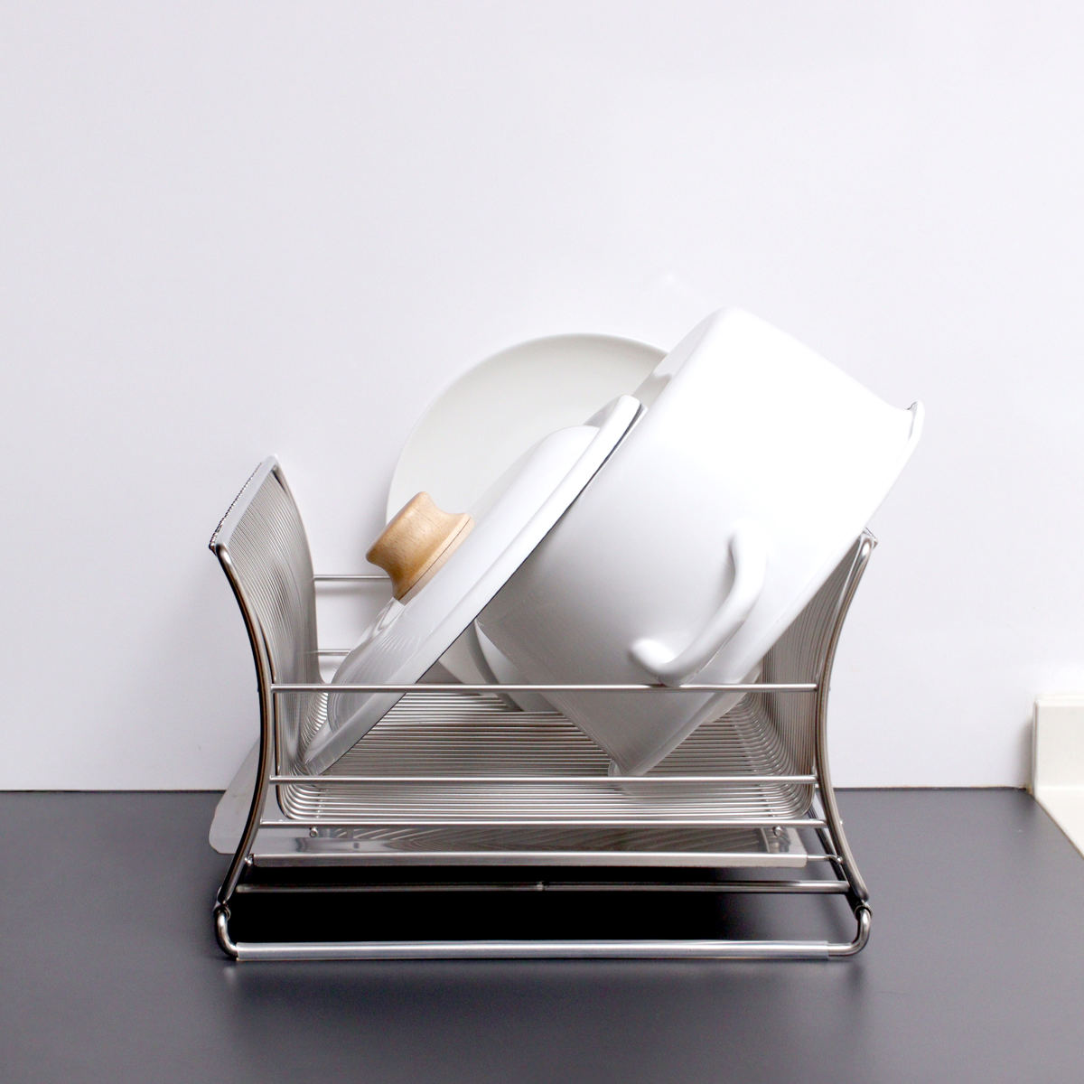 ゆるやかなカーブを描いた特殊な形状のワイヤーが、お皿のフチをしっかり支えてお皿が倒れにくいです。お皿を立てることで空気の通りが良くなり、乾きが速くなります。