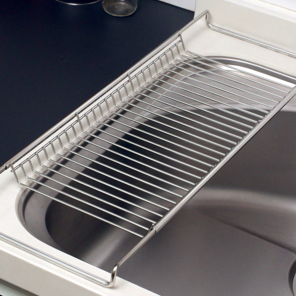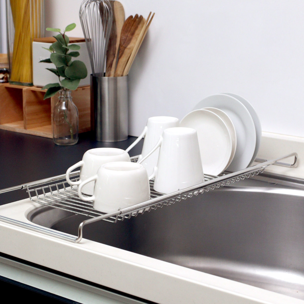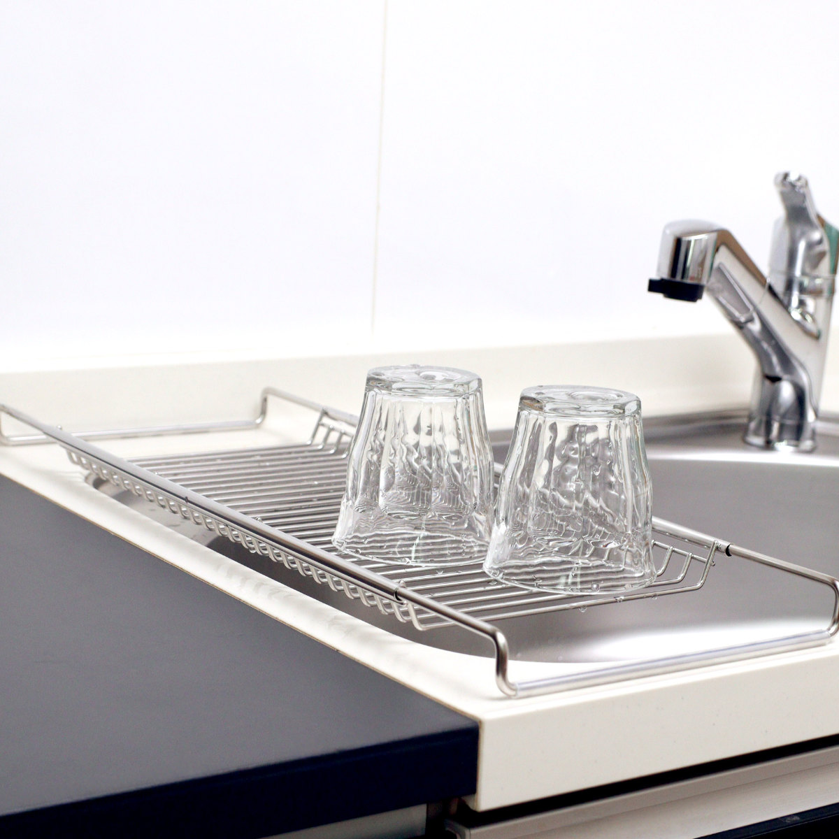 シンクの奥行に合わせて伸縮できるスライド式水切りラック