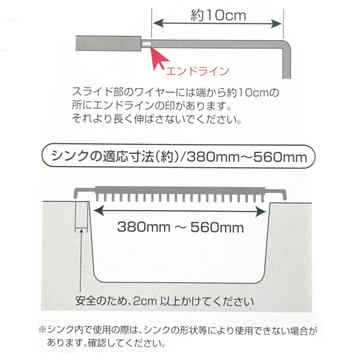 ご自宅のシンクの大きさに合わせて約42~60cmまで伸縮可能。簡単に調節して設置ができ、シンクにぴったりフィットします。