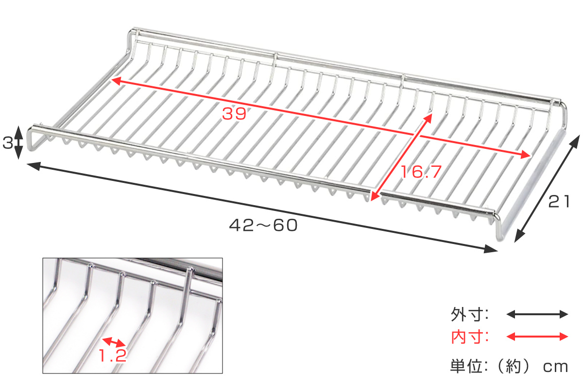 | サイズ | 約 幅42×奥行21×高さ3(cm) スライド時最大幅:約 60cm |