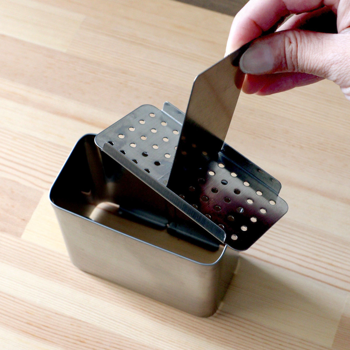 底板はパンチング仕様になっています。水はけが良く通気性が良いので、カトラリーが乾きやすいです。