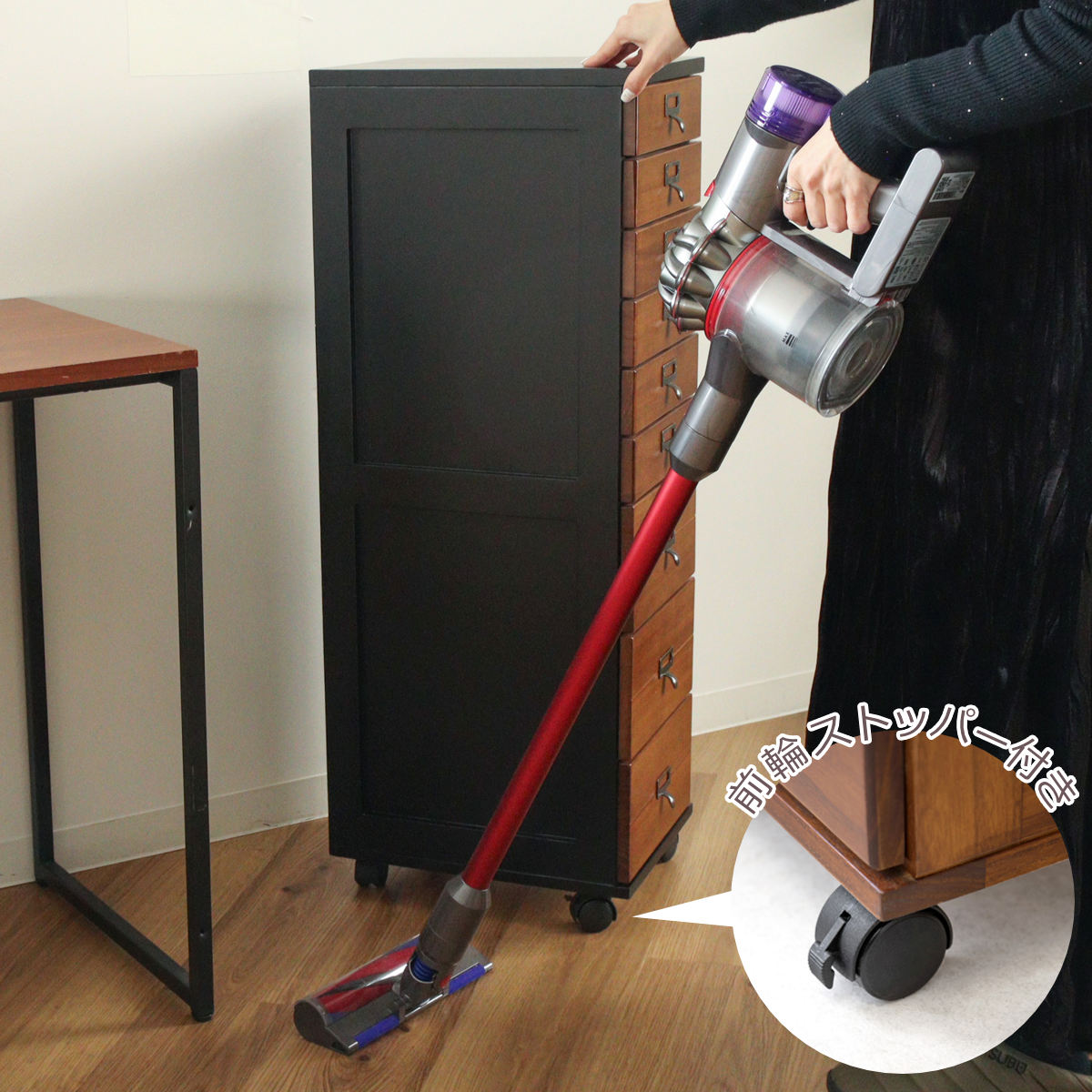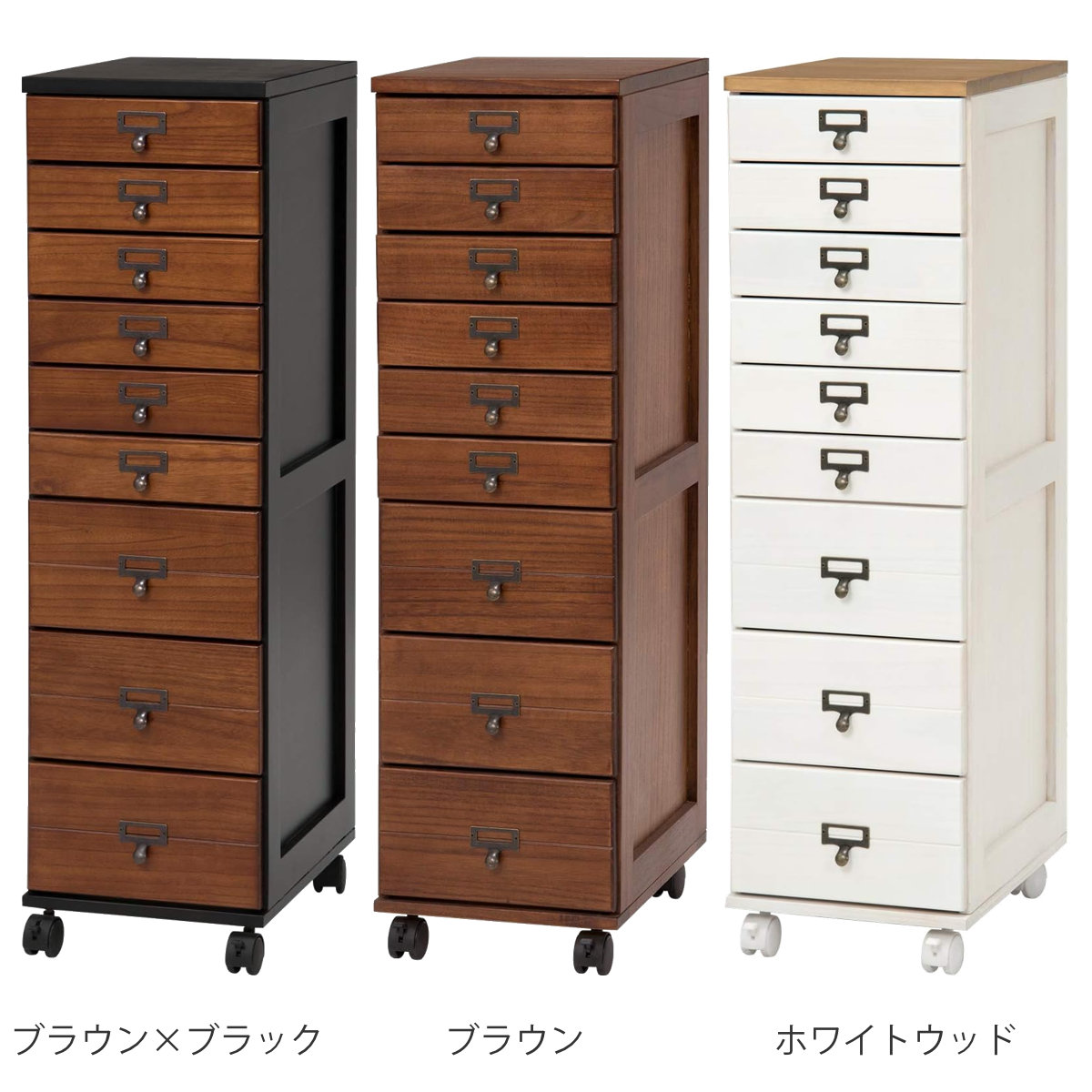 限られた空間にも置きやすい キャスター付きチェスト9段