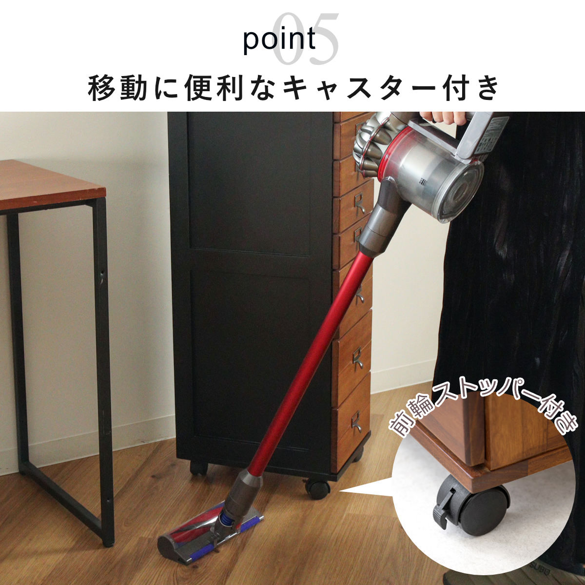 天然の桐材+キャスターで軽やかな使い心地