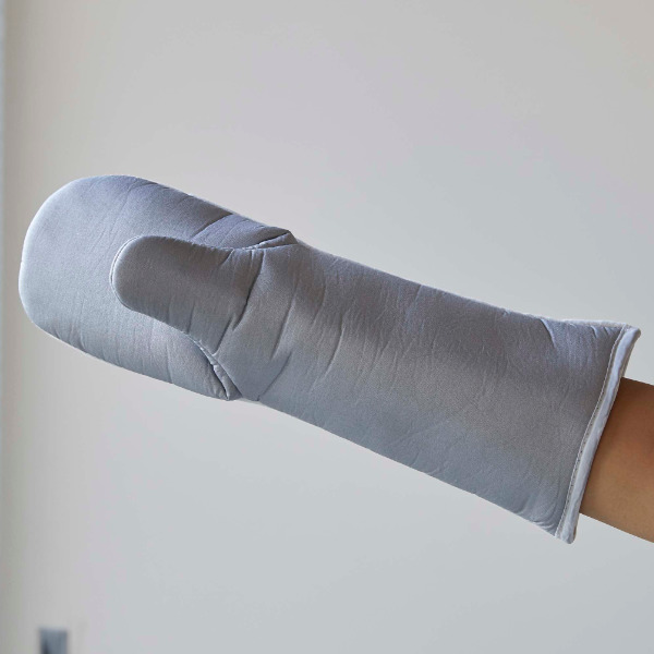 掛けたまま細かく整えられる左右両用のアイロンミトン