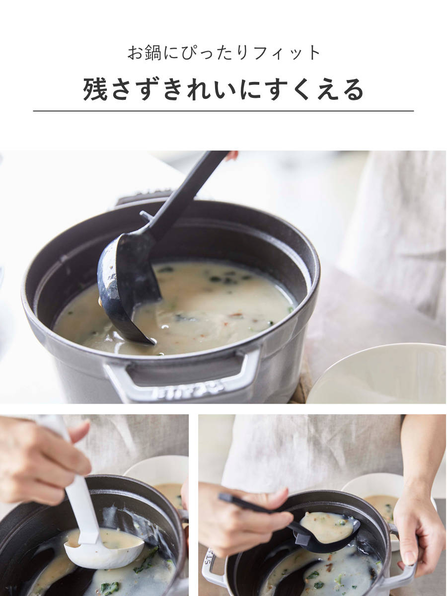 鍋にぴったりとフィットして、カレーやシチューなども残さずきれいにすくうことができます。