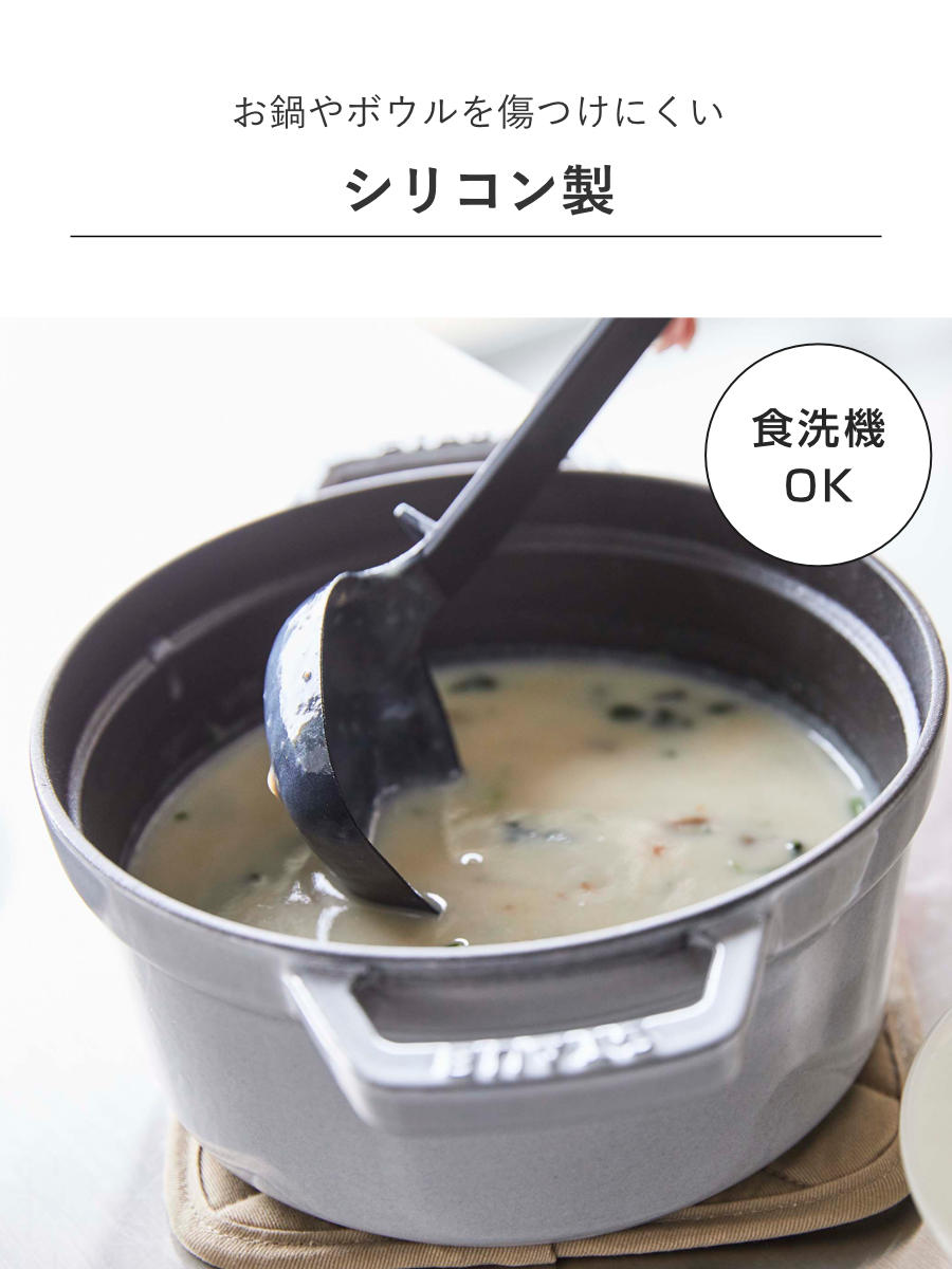 熱に強く、弾力性に優れたシリコーン製でお鍋などを傷つけにくいです。食洗機対応なので、お手入れも簡単です。