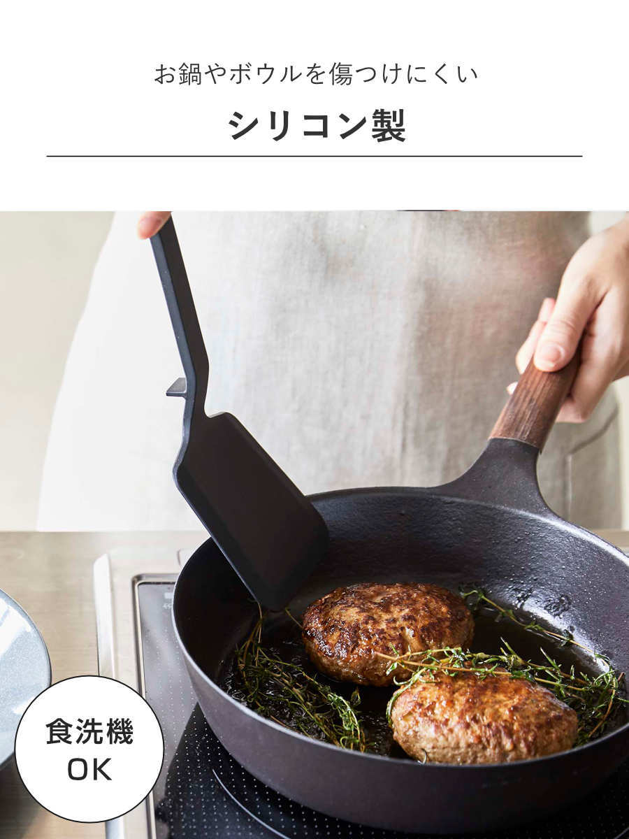 熱に強く、弾力性に優れたシリコーン製でフライパンなどを傷つけにくいです。食洗機対応なので、お手入れも簡単です。