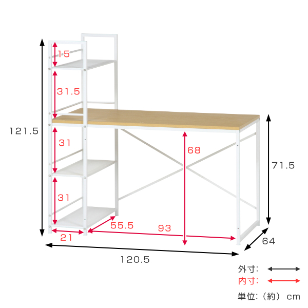 横幅は120cmと広く、パソコンを置いて本や書類を置いても余裕があるスペースです。在宅ワークや、勉強机として快適にお使い頂けます。