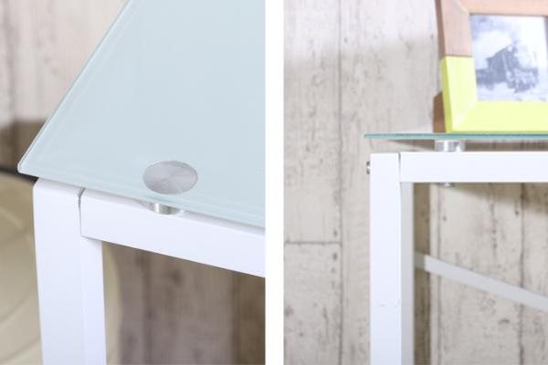 ●ガラスの天板はしっかり固定されているので、ズレたり落ちることがなく安心してお使い頂けます。