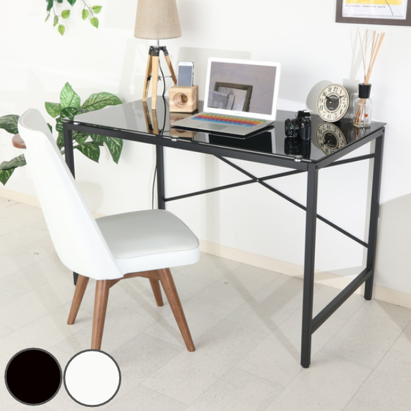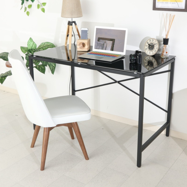 天板に6mmの強化ガラスを使用した高級感溢れるワークデスクです。シンプルなでデザインでお部屋を落ち着いた雰囲気を演出します。