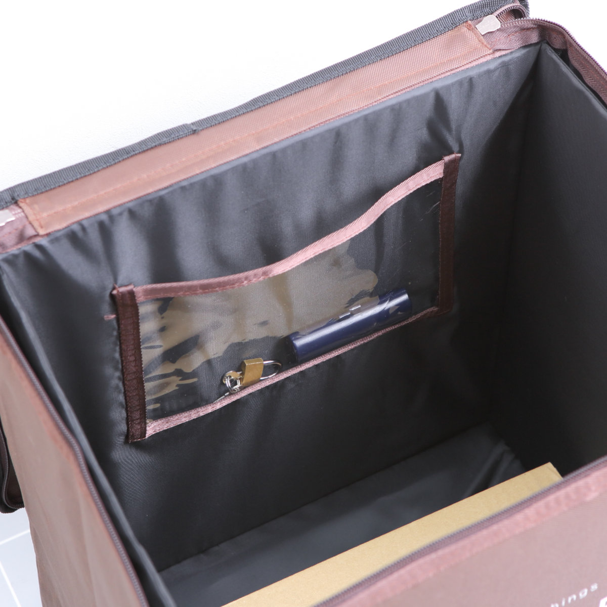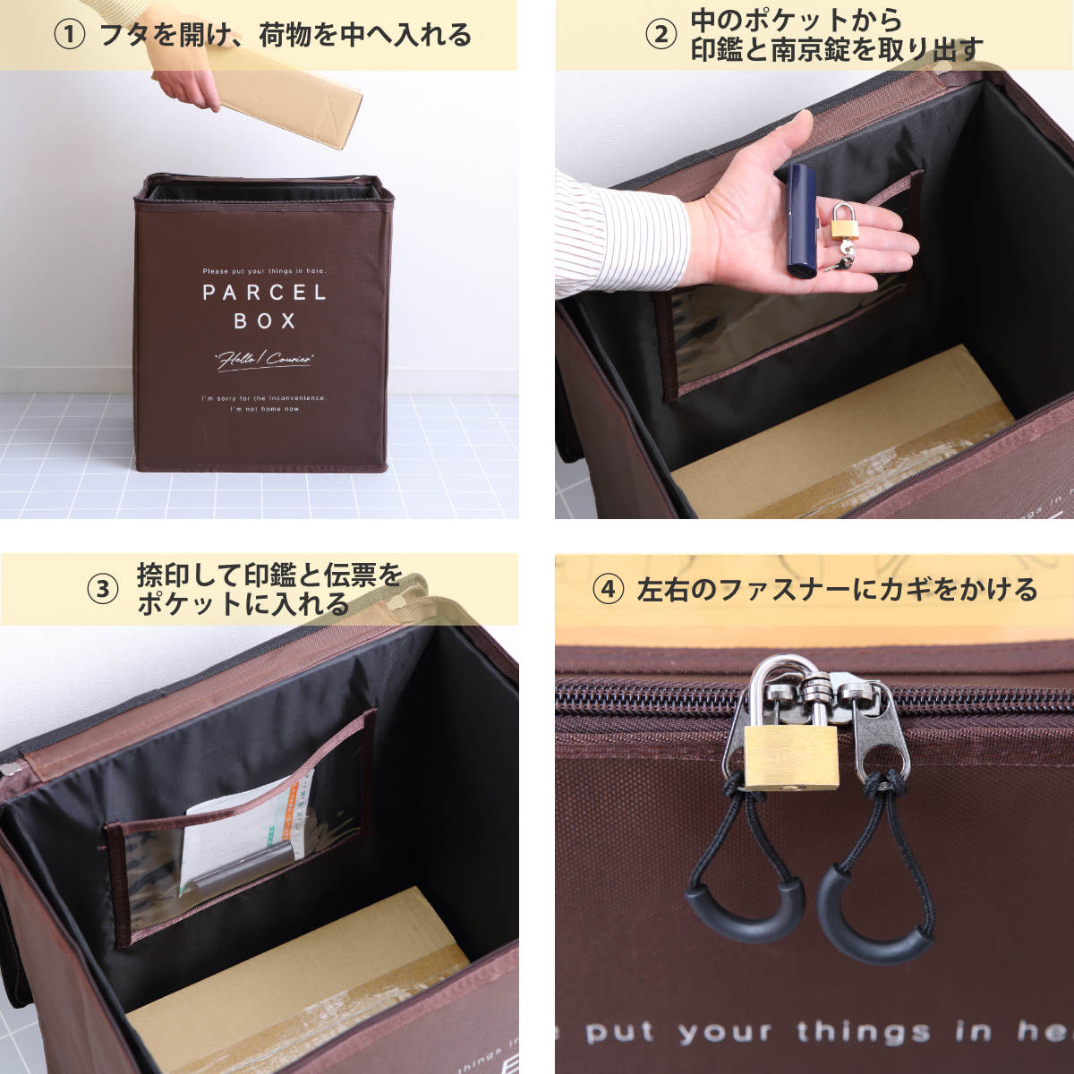 宅配業者さん向けの説明用紙が付属しています。また、内側には印鑑や南京錠を入れることができる、便利なインナーポケットが付いています。