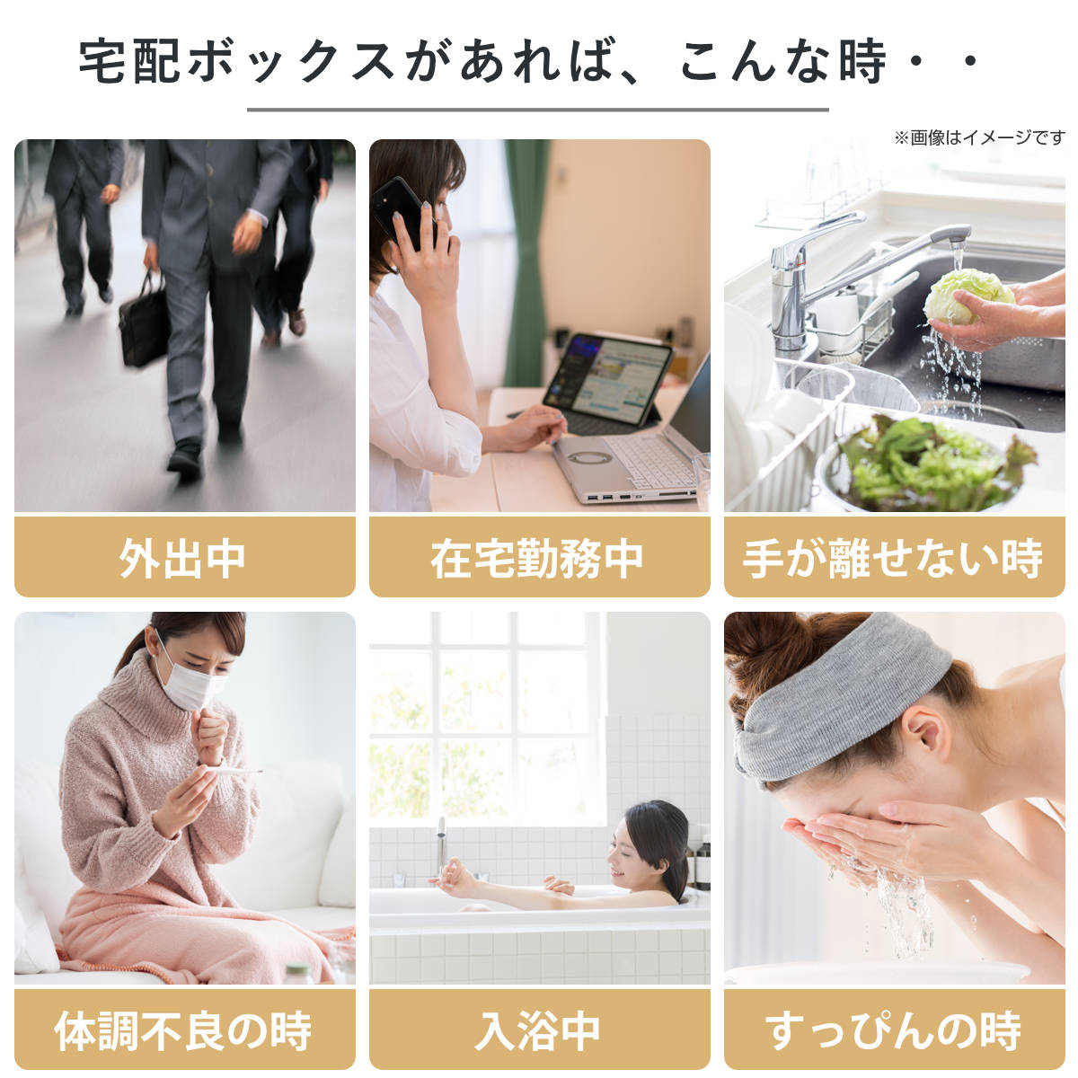 宅配ボックスがあれば、外出中はもちろん、体調不良で寝込んでいる時やお風呂に入っている時、手が離せない時なども宅配業者の方と対面せず荷物を受け取ることができます。