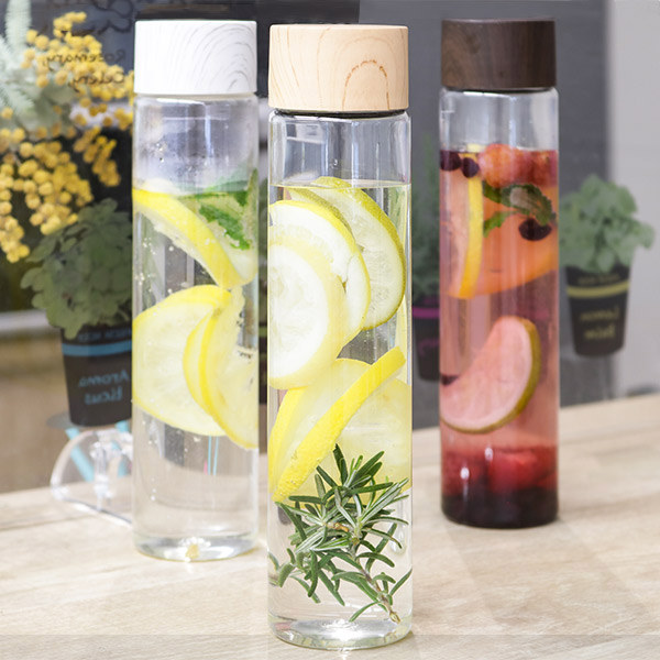 木目デザインがオシャレな容量340mlのクリアボトルです。フルーツなどを入れて手軽に作れるフレーバーウォーターに最適です。クリアで中身が見えるので、フルーツなどがより映えます。