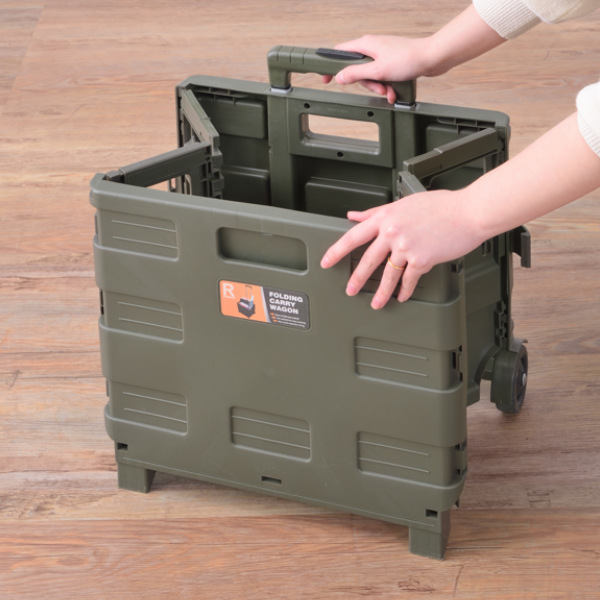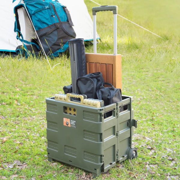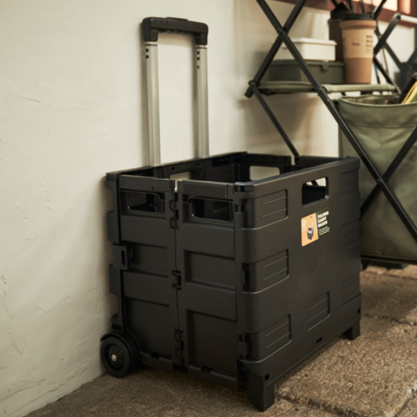 イスやレジャーシートなどのアウトドア用品を、まとめて持ち運べるキャリーワゴンです。ハンドルをたためば、ワゴンごと車に積み込みができ、キャンプやピクニックなどのアウトドアやレジャーに最適です。