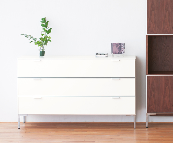 ●現代的な素材を活かしたミニマムなデザインのチェストです。