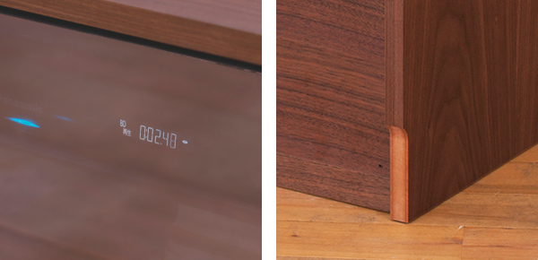どの角度から見ても美しい背面化粧が施され、背板はオープンになっているので、機器の熱もこもらず、雑然としがちなコード類をスッキリと配線できます。