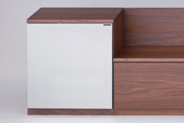 ●異素材を組み合わせたスタイリッシュなデザインの左開きキャビネットです。