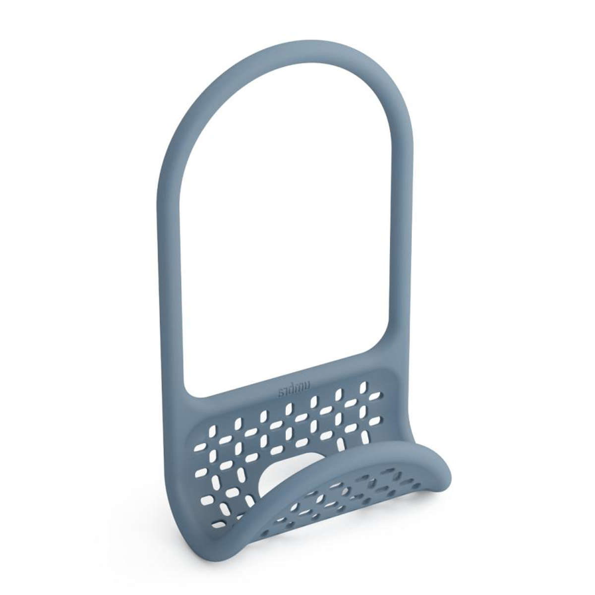 フレームにワイヤーが入っており、柔軟に変形させて使えます。太めの蛇口も取っ手のような部分を広げればっ引っ掛けられるので使用場所を選びません。中央で曲げてシンクのフチなどにも掛けられ、受け皿部分もスポンジやタワシの厚みに合わせて変形できます。