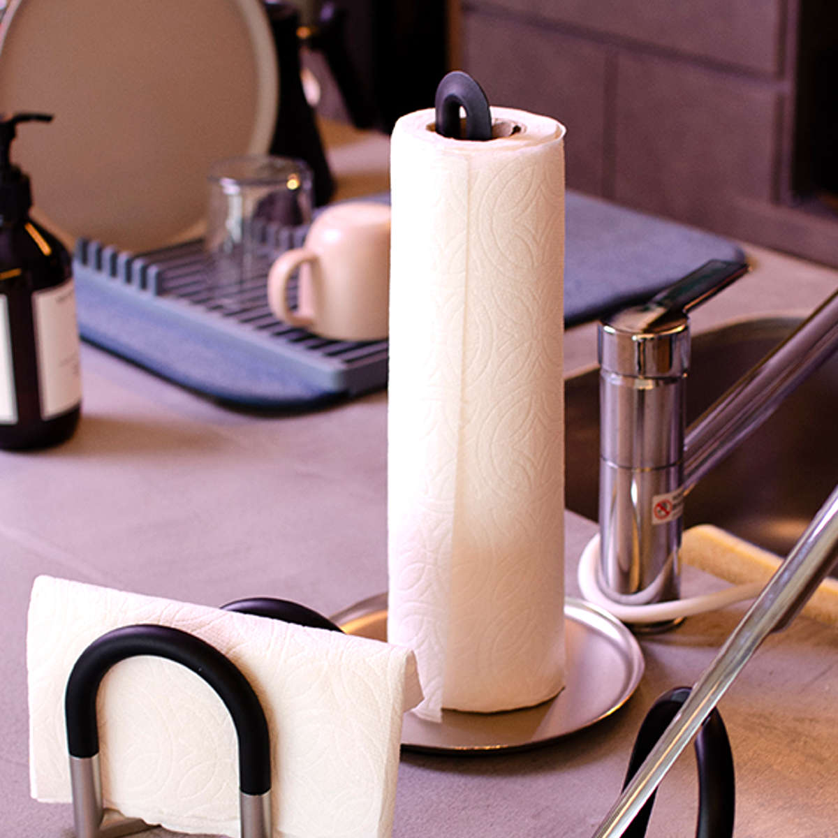 ●スチールとラバーでできたスタイリッシュなデザインのキッチンペーパーホルダーです。
