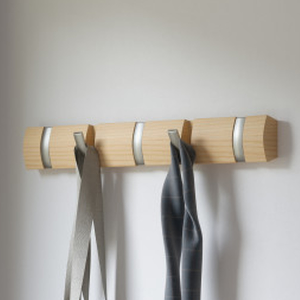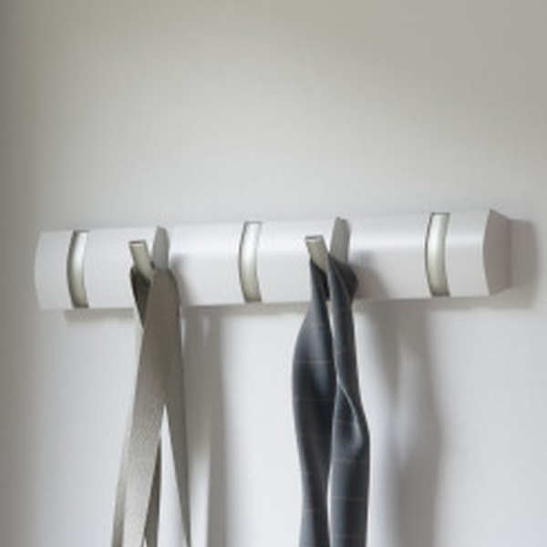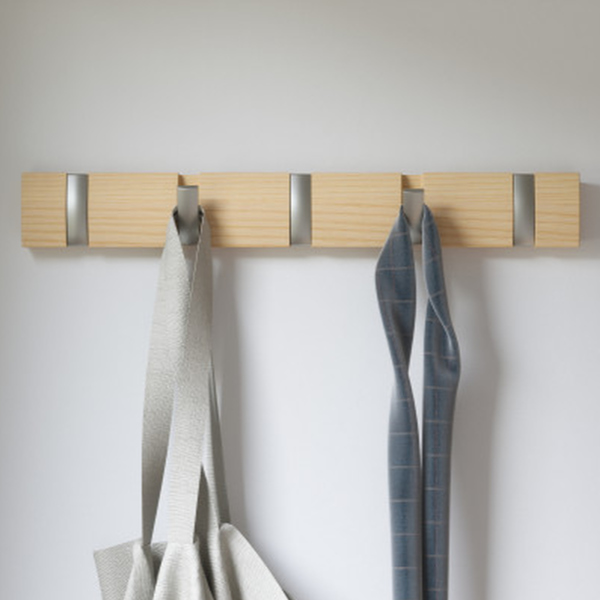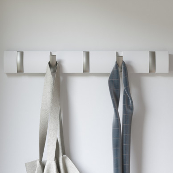 壁に取り付けて使うウォールフックです。フックは閉まっておけるので、使用していない時もスッキリとした見た目でお部屋に馴染みます。