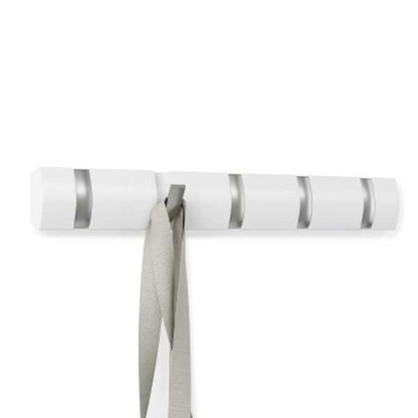 フックは必要に応じて開閉できる可動式で、5本付いています。それぞれのフックは最大2kgまで掛けることができ、洋服やバッグ、小物など、気兼ねなく掛けることができます。