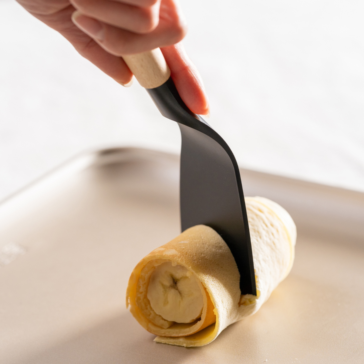 卓上調理などに便利な小ぶりのナイロンターナーです。ホットプレートでの調理などに使いやすいサイズ感になっています。耐熱温度180度なのでホットケーキやお好み焼きなど、幅広い料理にお使いいただけます。