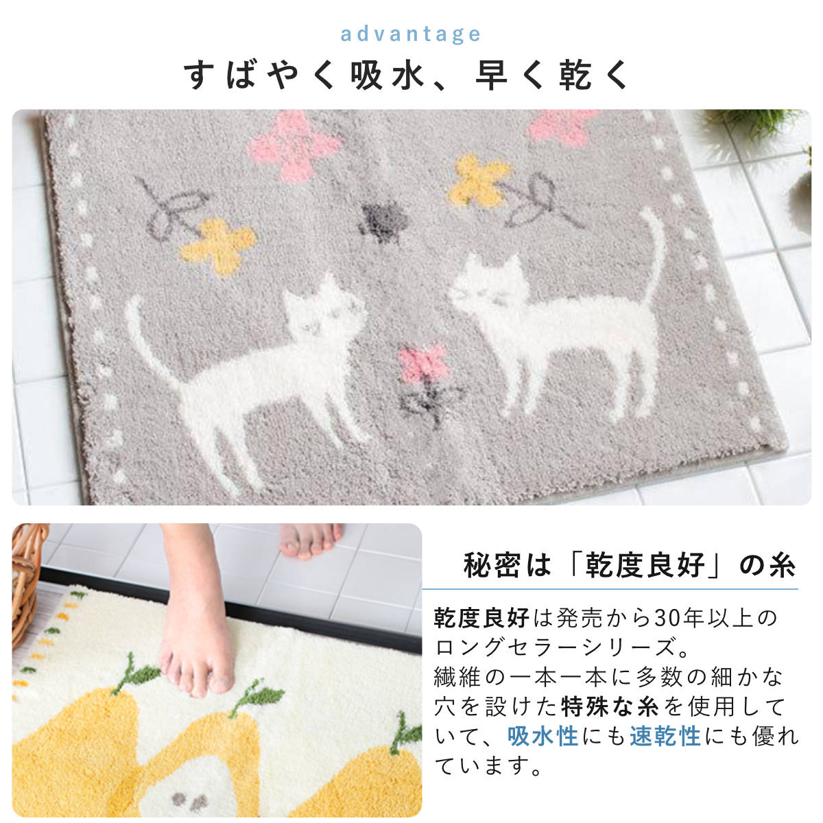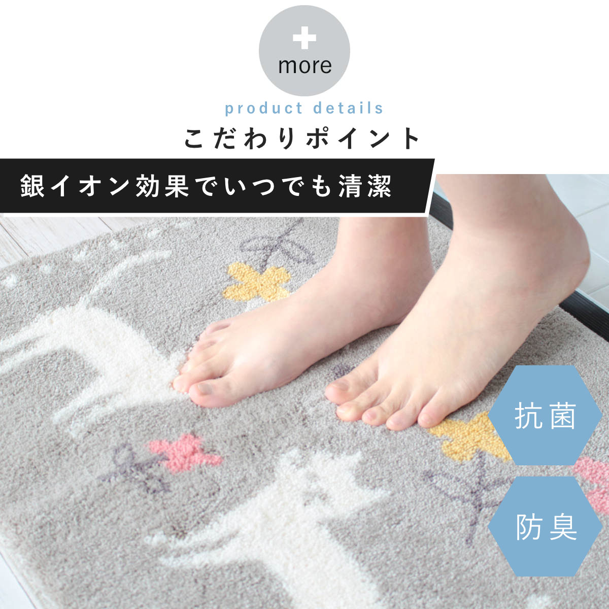 洗っても効果が続く抗菌防臭加工付きで、マット上の菌の増殖を抑制するので、いつまでも衛生的にお使いいただけます。