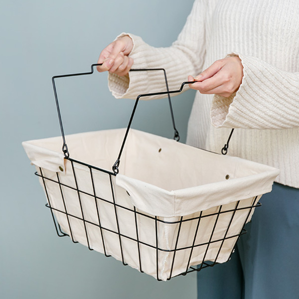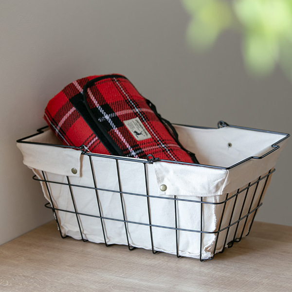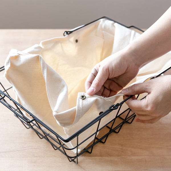 インテリアに馴染むワイヤーファブリックバスケット