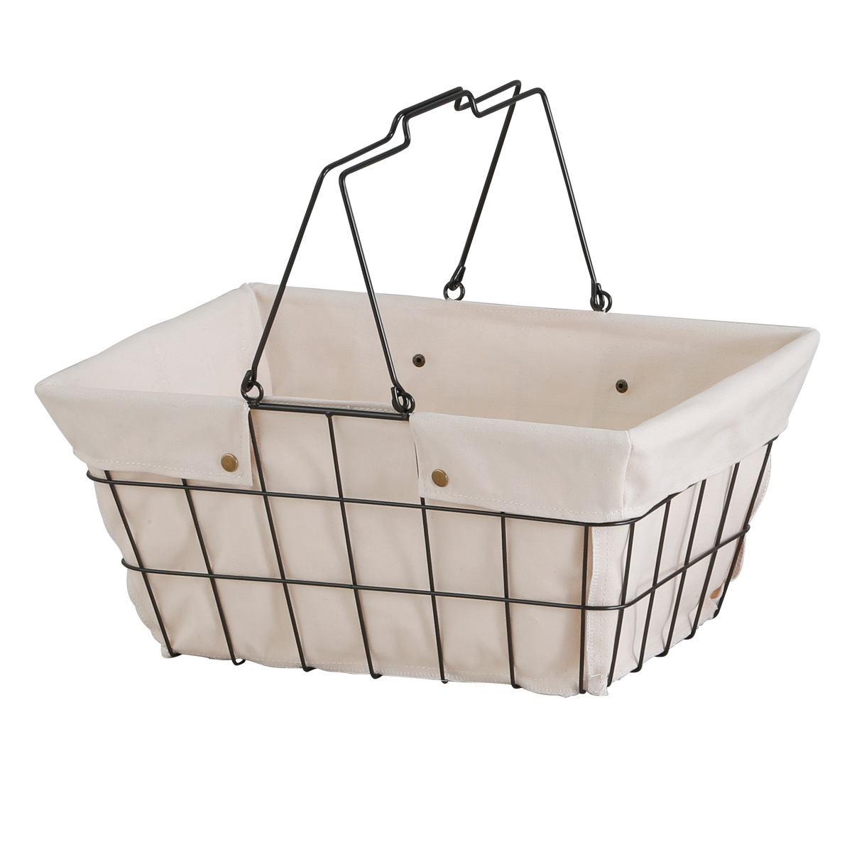布はボタンで留められているため用途に合わせて取り外せます。布を外して、かっこいいブラックのアイアンバスケットとしても使用できます。