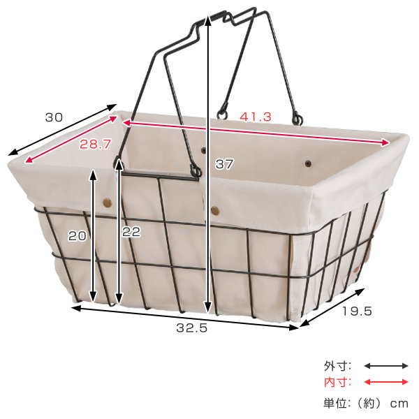 インテリアに馴染むワイヤーファブリックバスケット Lサイズ