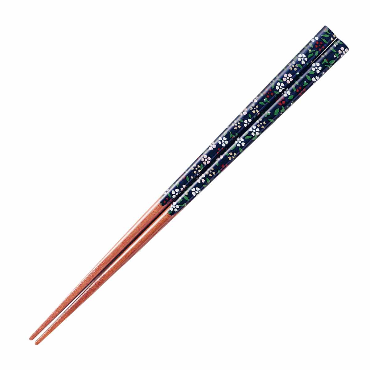 小花柄が華やかなお箸です。箸先は先角で細く、すべり止めもついているので麺類などもつまみやすいです。色違いのお箸で揃えると、夫婦箸になります。毎日の食事がより豊かになります。