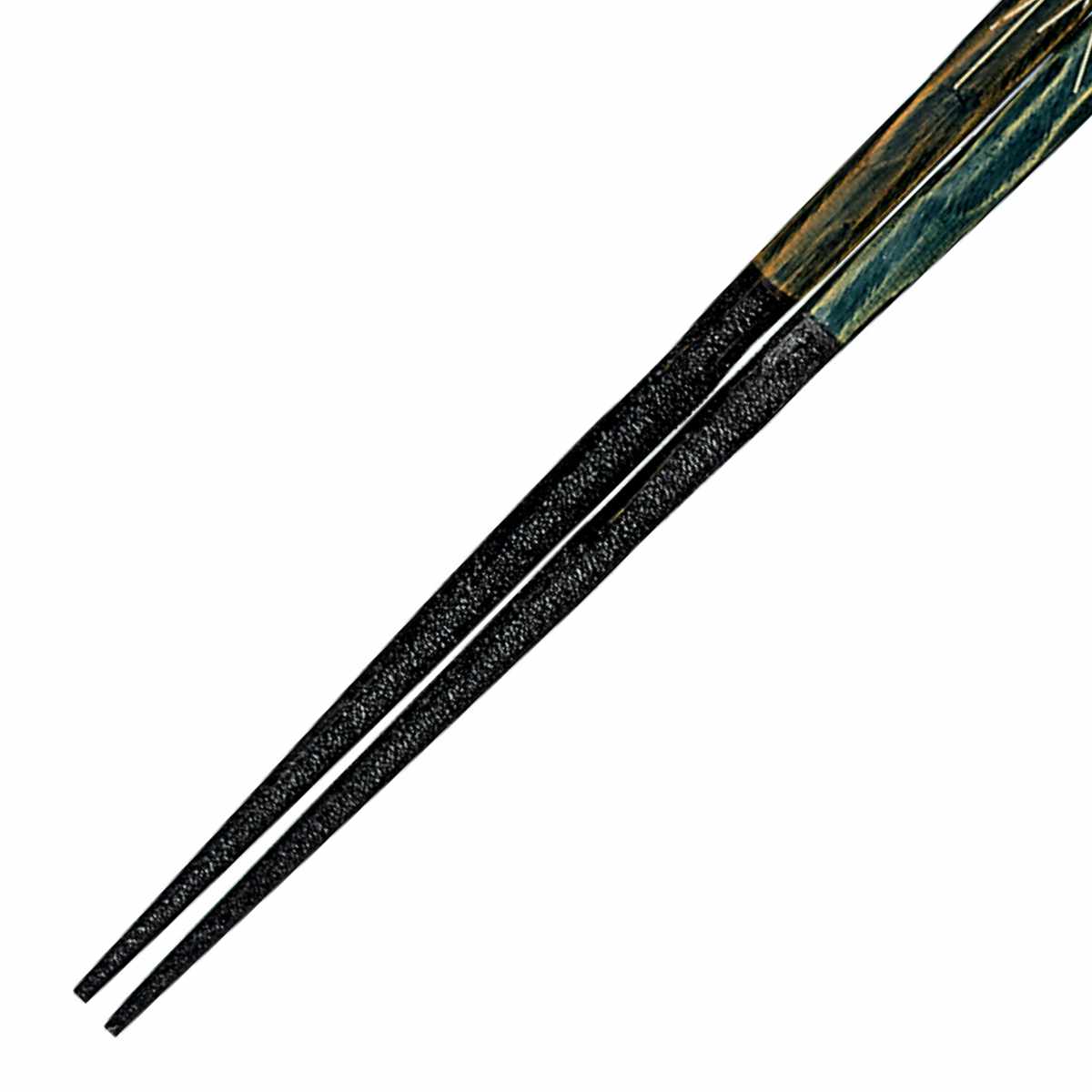 先端は乾燥した漆の粉を塗り重ねて仕上げられており、とても丈夫です。うどんやおそばなど、食べ物が滑りにくく掴みやすくなっています。