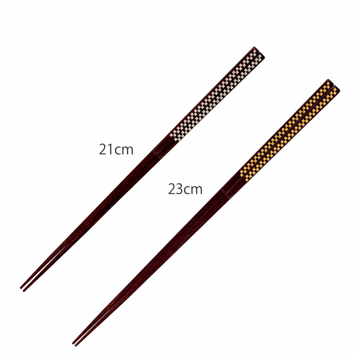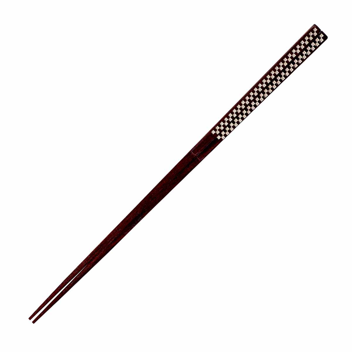 手にしっくりと馴染みの良い、天然木のお箸です。21cm、23cmのサイズからお選び下さい。木目を生かしたシンプルなデザインに、持ち代部分の市松模様があでやかで美しく、毎日の食卓を引き立てます。華やかな装いの木製箸は、おもてなしの席でも活躍します。