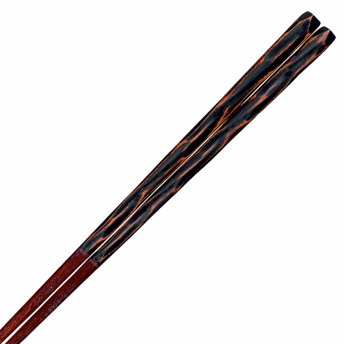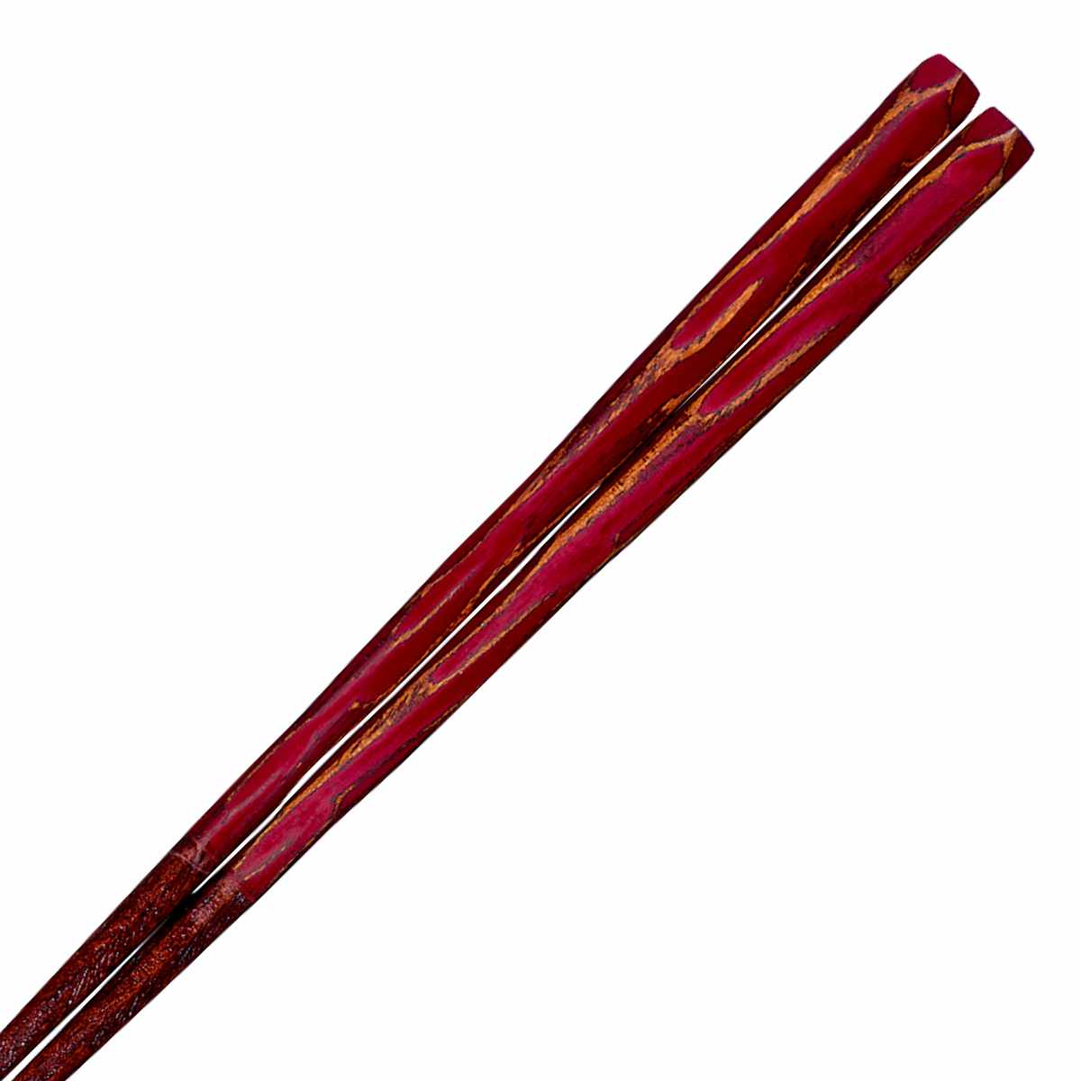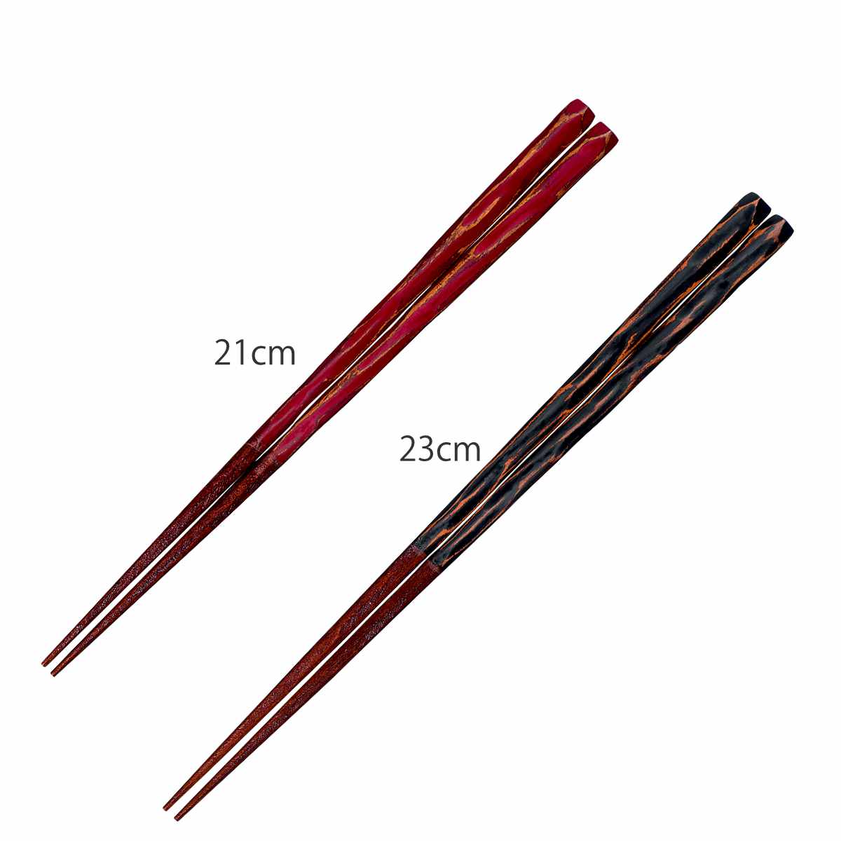 手にしっくりと馴染みの良い、天然木のお箸です。21cm、23cmのサイズからお選び下さい。木目を生かしたシンプルなデザインに、持ち代部分のごつごつとしたカラーリングがおしゃれで、忘れ潮をイメージした彫りのデザインが特徴的です。様々な食卓によく馴染み、おもてなしの席でも活躍します。